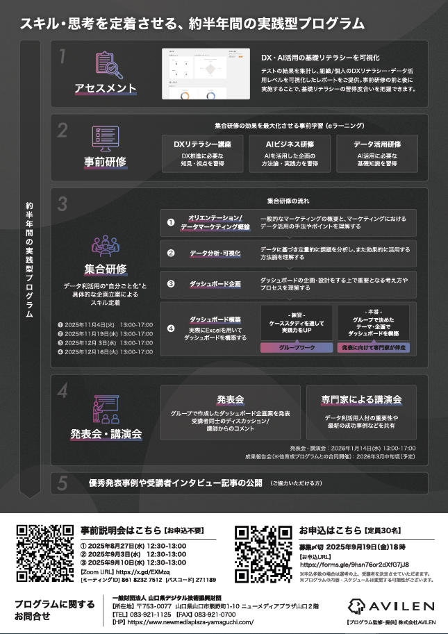 主催:一般財団法人山口県デジタル技術振興財団、プログラム監修・提供:株式会社AVILEN